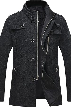 Mens Wool Blend Jacket Stand Collar Windproof Pea Coat