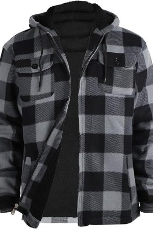 Winter Heavy Warm Sherpa Lined Fleece Plaid Flannel Jacket Men Mens Coat