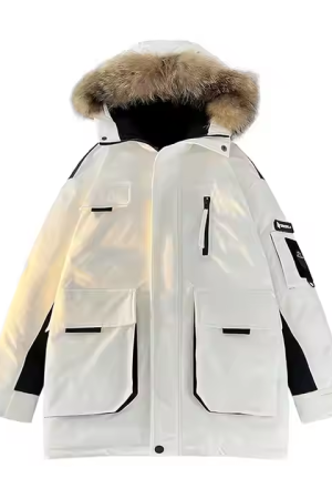 Duck Down Detachable Fur Collar Windproof Parka Men Winter Jacket