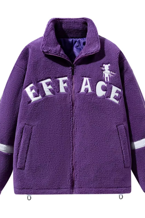 Embroidery Zipper Thick Warm Winter Men Sherpa Fleece Jacket