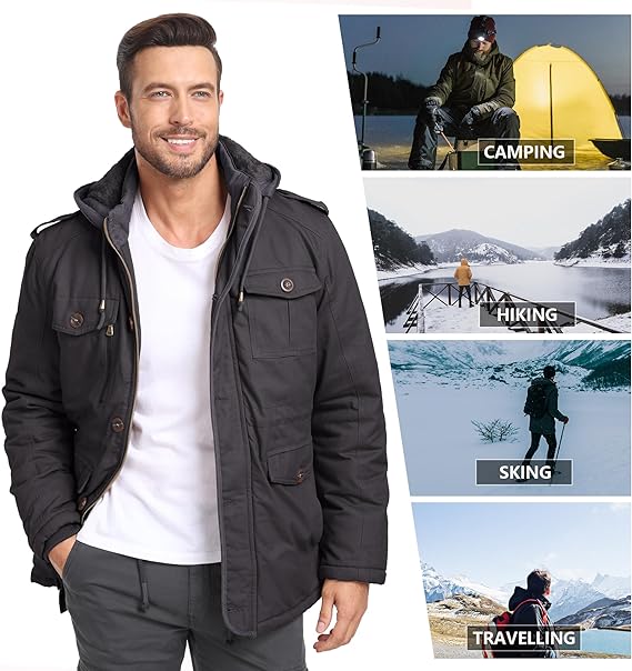 Be the first to review “Mens Winter Jackets with Removable Hood Fleece Lined Cotton Military Work Jackets Outerwear Coats with Pockets”